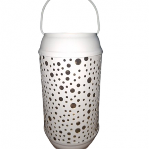 Farolillo Porta Vela Cilíndrico Blanco Calado con Asa