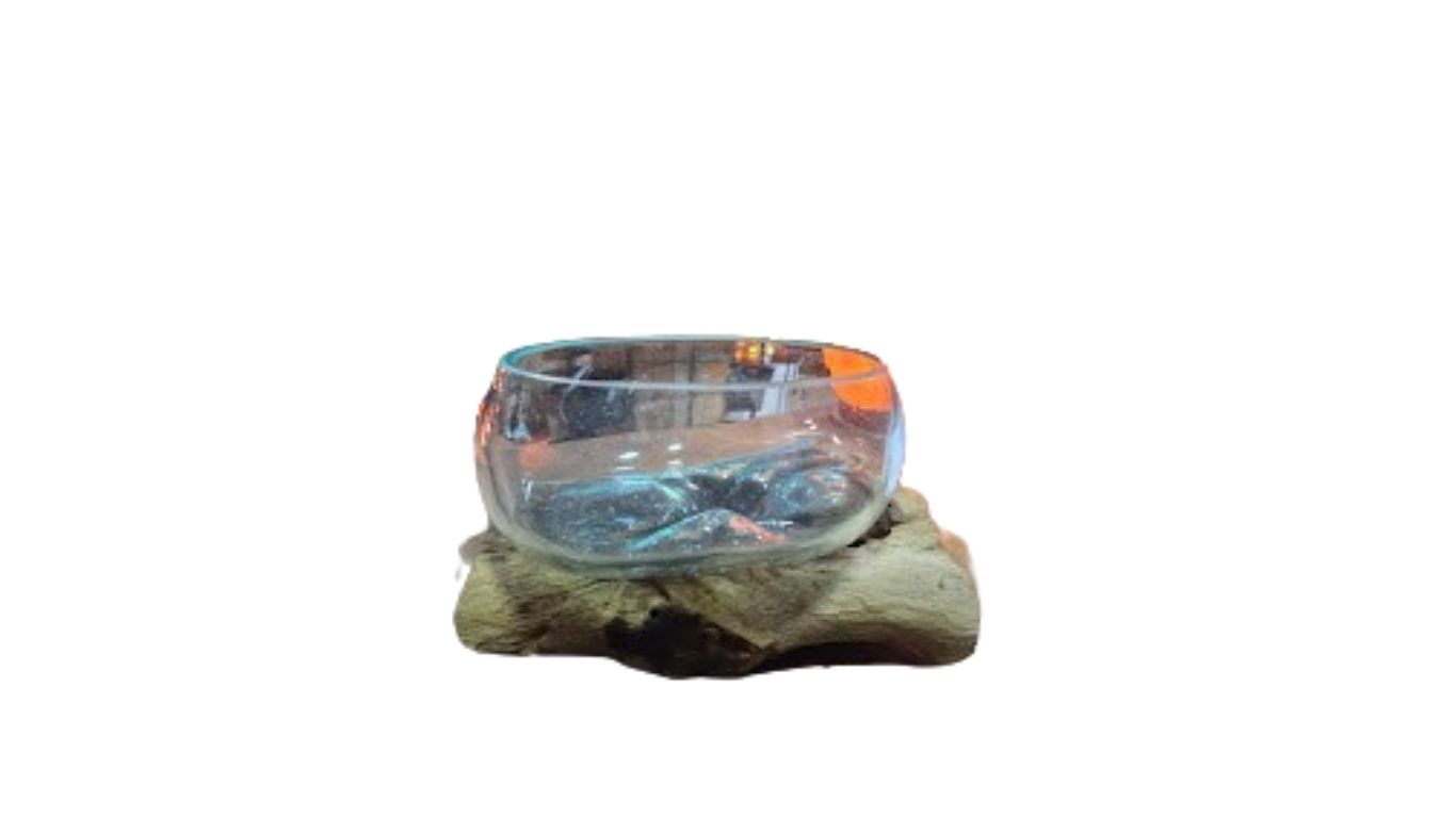 1.Cuenco de Cristal sobre Base de Madera Natural
