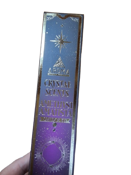 Eleva la vibración de tu espacio con este incienso orgánico artesanal de la marca Aroma, elaborado con ingredientes 100 % naturales y resinas puras. Cada cajita incluye chips de amatista auténtica, una piedra sagrada asociada con la paz, la intuición y la protección espiritual.