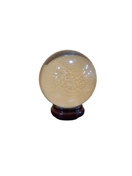 – **Base de Resina**: Cada bola de cristal incluye una elegante base de resina que imita la apariencia de la madera natural. Esta base no solo aporta un toque decorativo, sino que también proporciona un soporte firme y seguro para la esfera, haciendo que sea un objeto de exhibición perfecto.