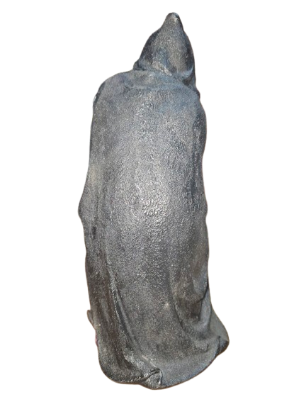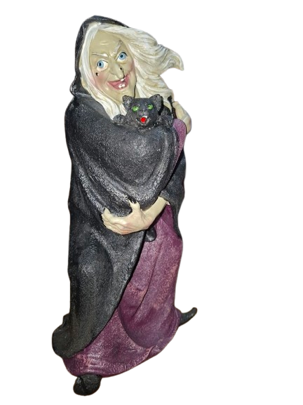 La postura firme de la bruja y su conexión con el gato reflejan una energía de intuición, protección y autenticidad. Esta pieza destaca por su carácter, alejándose de la bruja clásica para mostrar una figura más cercana, segura de sí misma y con personalidad propia.