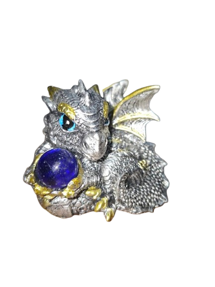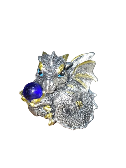 ✨ Dragón bebé plateado con esfera azul