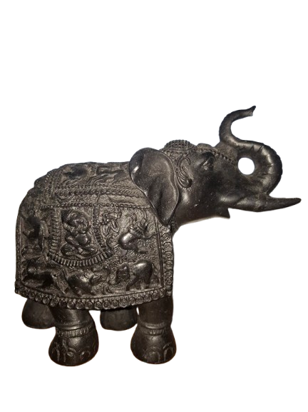 Grabados detallados: Incluyen otros animales y motivos simbólicos, destacando un elefante central que puede estar asociado con Ganesha, la deidad hindú de los nuevos comienzos y la eliminación de obstáculos.