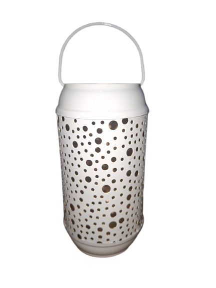 🕯 Farolillo Portavela Cilíndrico Blanco Calado con Asa