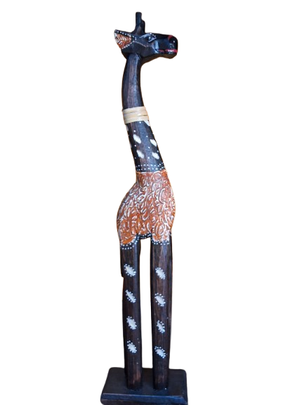 Bonita Y simpática Jirafa tallada en madera y pintada a mano de manera artesanal, un toque africano,para decorar y dar vida a cualquier estancia.