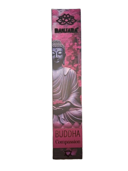 El incienso Banjara Buddha – Compassion está creado para abrir el corazón y suavizar la energía emocional. Su aroma floral y cálido envuelve el ambiente con una sensación de paz, amabilidad y comprensión.