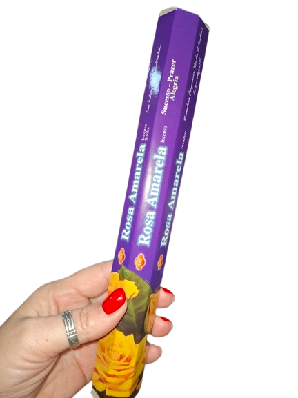 El incienso masala de rosa amarilla combina la dulzura de la rosa con la energía vibrante del color amarillo, creando un aroma floral y alegre que atrae alegría, optimismo y relaciones armoniosas.