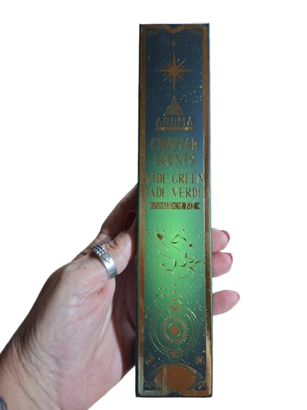 El incienso de Jade Verde con chips de mineral combina la frescura y energía armoniosa del jade con la fragancia purificante de sus varillas, creando un ambiente equilibrado y lleno de bienestar. Este incienso ayuda a atraer prosperidad, salud y armonía, al tiempo que purifica las energías estancadas del espacio.