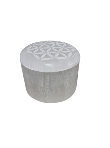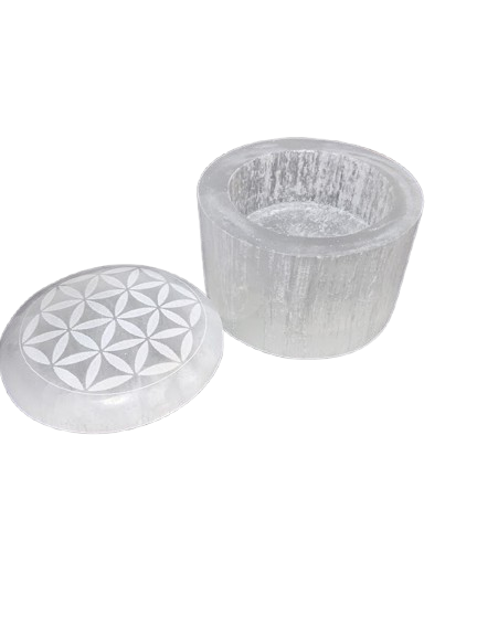 Este elegante joyero está tallado en selenita natural y grabado con la Flor de la Vida, uno de los símbolos sagrados más poderosos del universo. Representa la unidad, la armonía y la creación divina, potenciando la energía pura que emite la selenita.