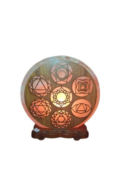 Eleva la energía de tu hogar con la lámpara de sal rosa del Himalaya de 20 cm. Su forma circular y base de madera natural aportan elegancia y calidez, mientras que el detalle decorativo con los Siete Chacras ayuda a equilibrar y armonizar la energía del cuerpo y del espacio, fomentando bienestar físico, mental y espiritual.