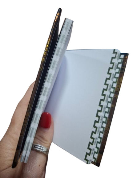 Una libreta pequeña pero con gran carácter, pensada para quienes buscan un objeto especial, con fuerza y significado. Ideal como agenda o como cuaderno personal.