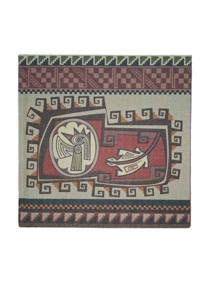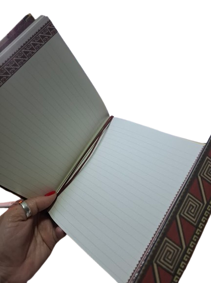 Libreta de tapa dura forrada en tela con un elegante estampado de inspiración precolombina en tonos marrones, que le aporta un estilo artesanal y cÔlido. Su formato cuadrado de 17 x 17 cm la convierte en una libreta cómoda y original, perfecta para escribir, tomar notas o utilizar como diario personal.