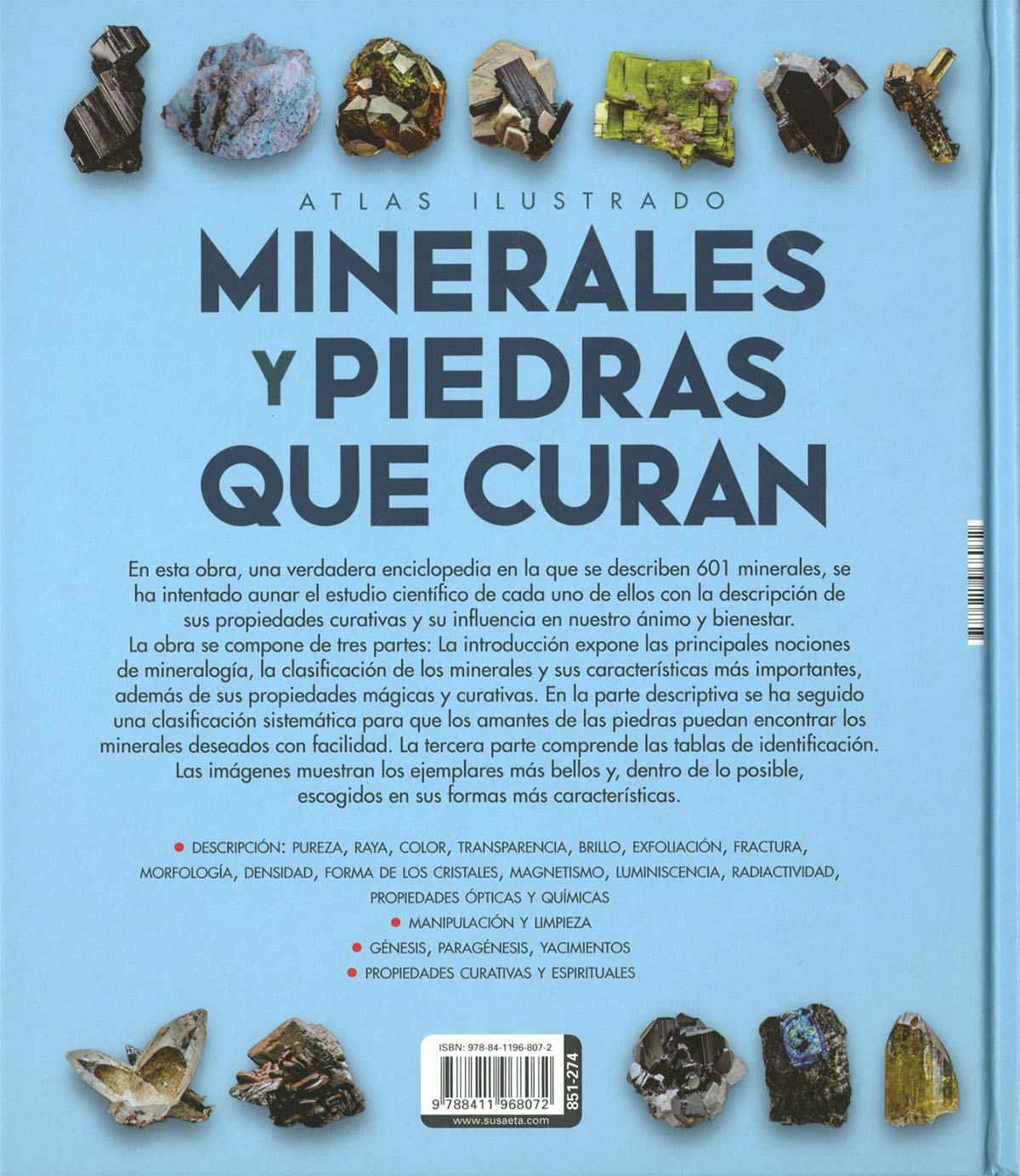 Este atlas reúne 601 minerales descritos con rigor científico, combinando conocimiento técnico con la sabiduría ancestral sobre sus propiedades energéticas, curativas y su influencia en nuestro ánimo y bienestar.