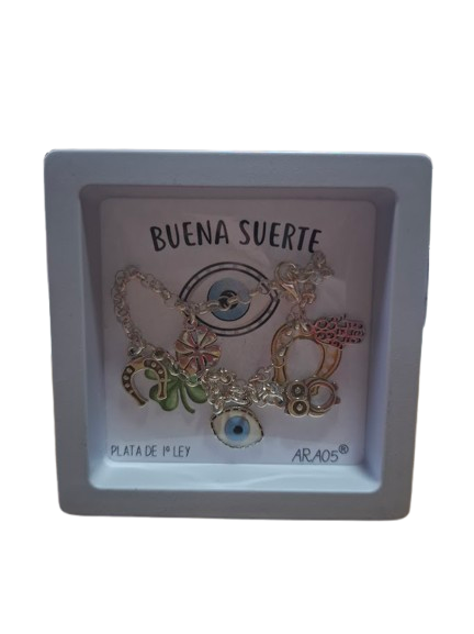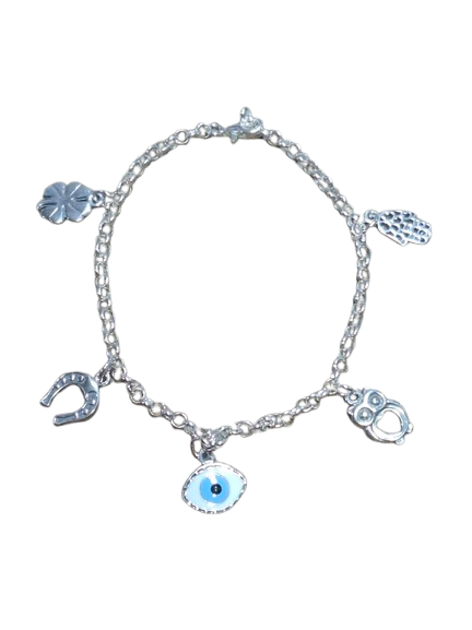 Pulsera de plata amuletos de la suerte