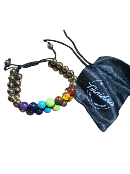 Pulsera formada por dos filas iguales, combinando pirita natural con las cuentas representativas de los 7 chakras. Su diseño equilibrado y energético la convierte en una pieza ideal para el día a día.