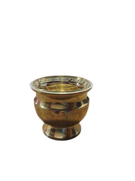 Quemador de estilo tradicional fabricado en metal, perfecto para quemar resinas, hierbas, mezclas aromáticas e inciensos sueltos. Incluye una rejilla superior extraíble que actúa como protección ante posibles chispas y ayuda a que el humo se disperse de forma más uniforme.