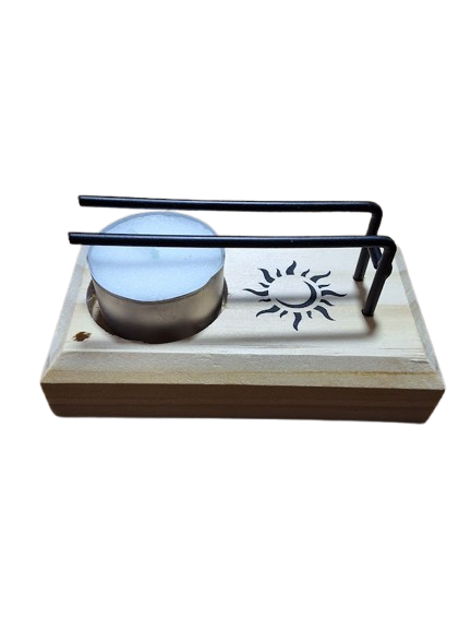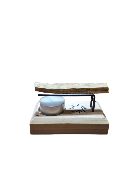 Funciona con una vela tipo tea light (no incluida), que ayuda a mantener el Palo Santo encendido durante más tiempo sin necesidad de reavivarlo constantemente.