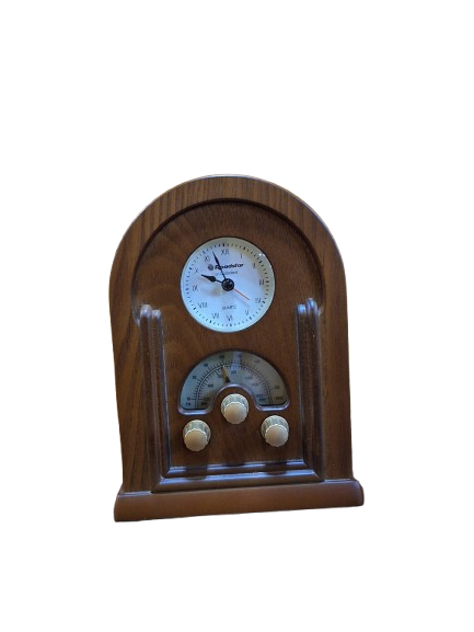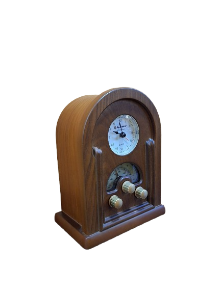 Este encantador radio/reloj de madera captura la esencia del estilo clásico sin perder funcionalidad ni encanto.