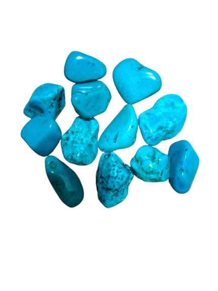 La turquesina es una piedra de color azul turquesa con vetas oscuras que recuerdan a la clásica turquesa. Es muy apreciada por su belleza y por la energía protectora y equilibrante que se le atribuye. Su tono azul está tradicionalmente asociado con la calma, la comunicación y la armonía interior.