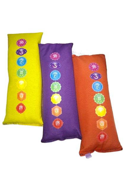Sacos térmicos elaborados con semillas naturales y una almohadilla de extractos de lavanda, menta y romero. Disponibles en tres colores: amarillo, morado y naranja.