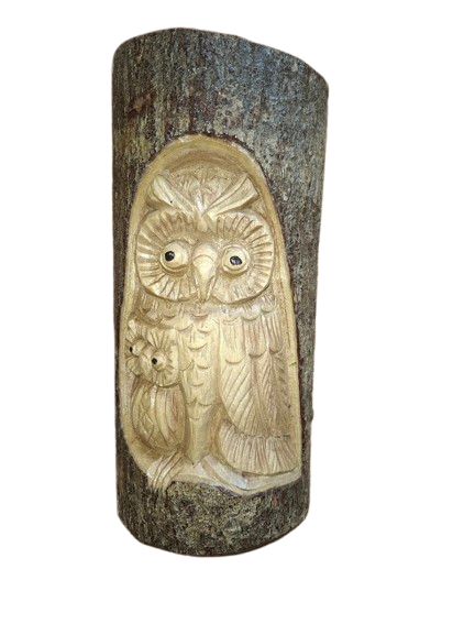 Decoración de pared en madera – Búhos tallados