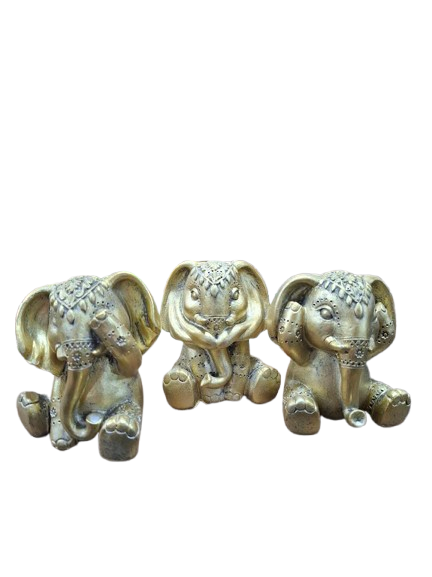 Este set de tres Ganeshas en color dorado viejo representa la sabiduría espiritual a través de los principios de ver, oír y callar. Cada figura transmite un mensaje de equilibrio, autocontrol y armonía interior, recordándonos la importancia de la reflexión y la atención consciente en la vida diaria.