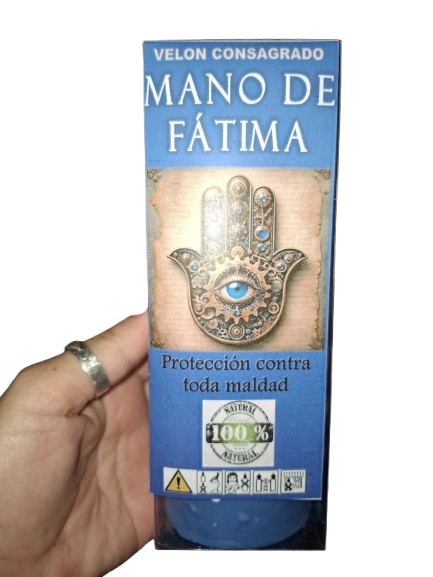 Este poderoso velón consagrado ha sido preparado para actuar como **escudo espiritual** ante cualquier energía densa o malintencionada. El símbolo de la **Mano de Fátima** (o Jamsa) es un amuleto ancestral usado en distintas culturas para **proteger contra el mal de ojo, la envidia y las vibraciones negativas**.