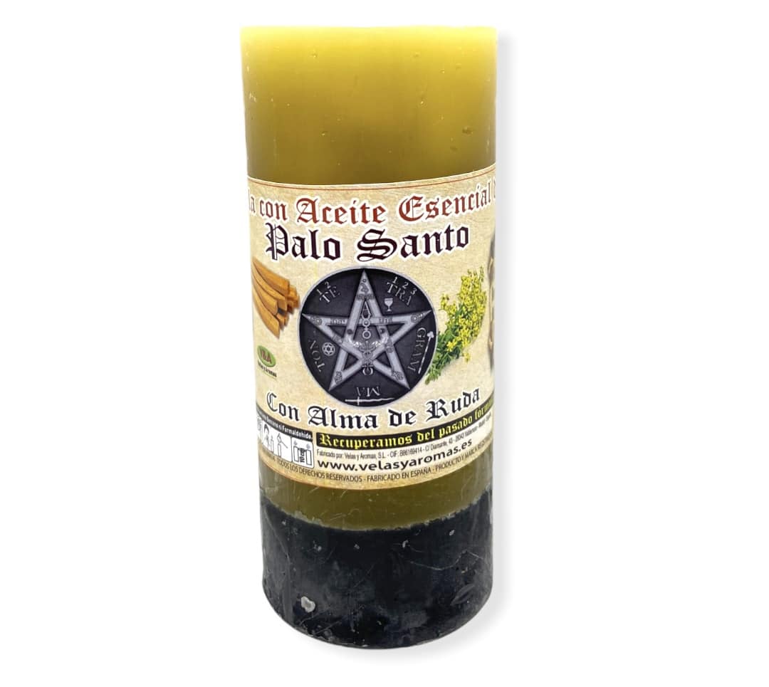 Este velón está elaborado con aceite esencial de Palo Santo e incorpora en su interior el alma de la ruda, una planta reconocida desde la antigüedad por su poder protector. La combinación de ambos elementos genera una energía intensa de purificación, corte de negatividad, y fortalecimiento del aura personal.